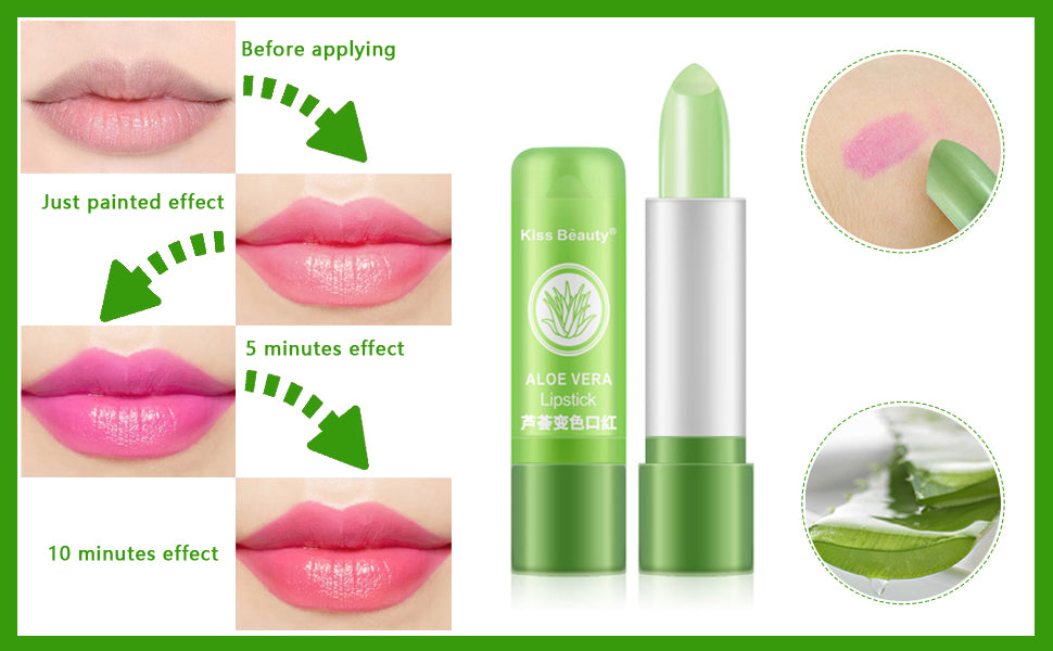- ✅【Item Type】aloe vera lipstick Color Mood Changing Long Lasting Moisturizing Lip Stick Lip Moisturizer Lip Gloss Lip Makeup.